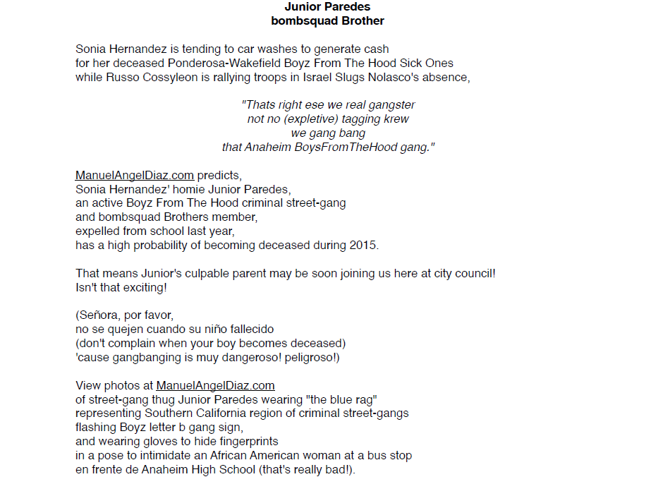 'cause his bomsquading Y gangbanging is muy dangeroso!)