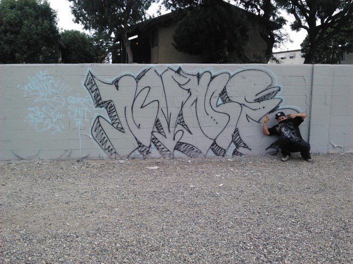 in front of graffiti vandalism
